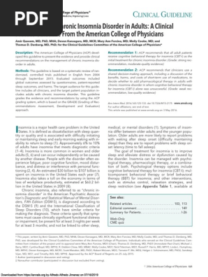 Acp Recommendations For Initial Treatment Of Chronic Insomnia