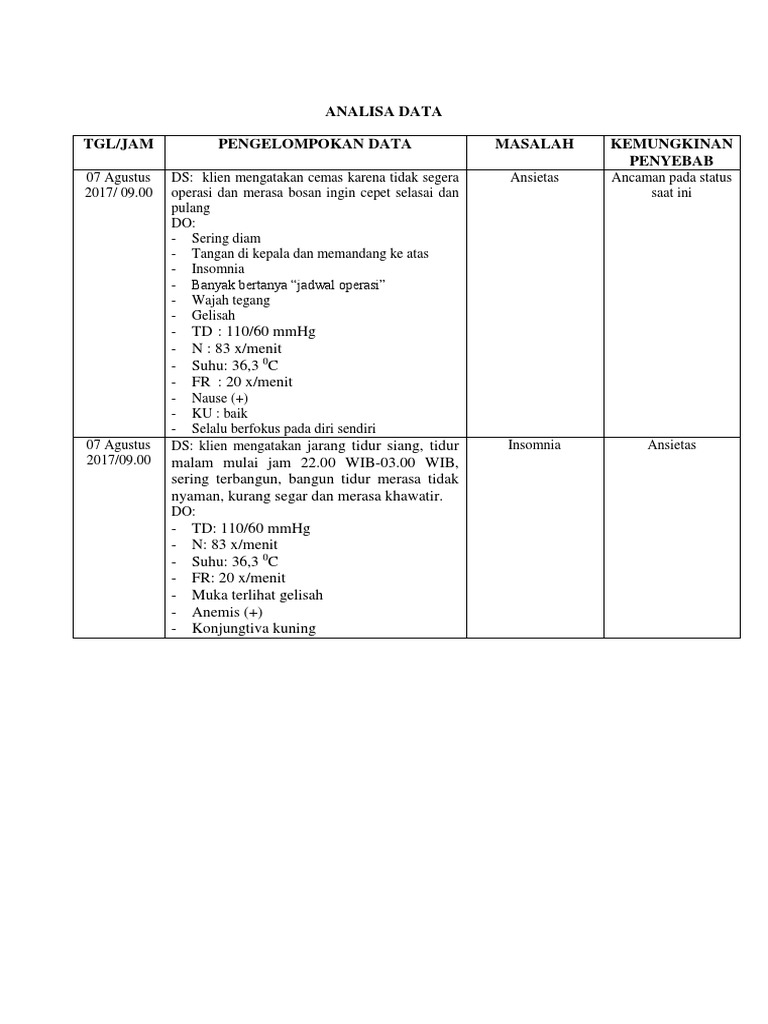 Analisa Data Gangguan Pola Tidur