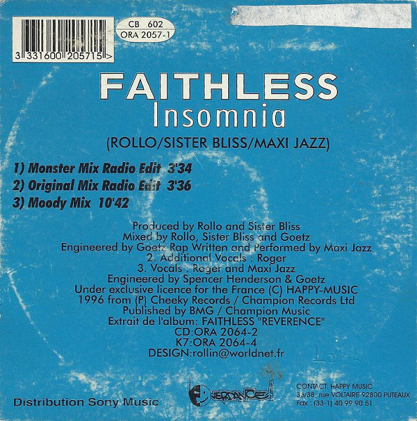 Cd Single Faithless Insomnia Monster Mix Radio Edit Cheeky