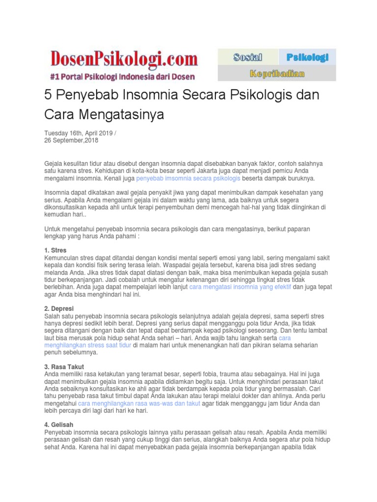 Insomnia Menurut Psikologi