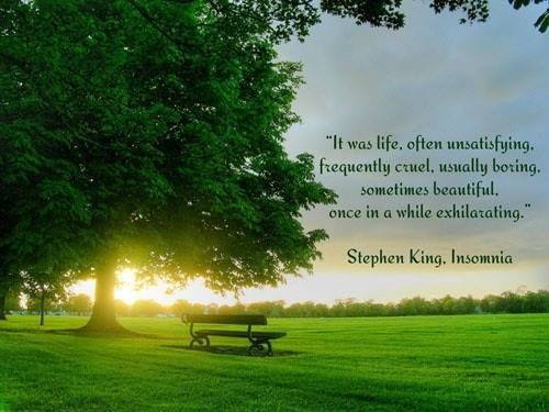 It was life often unsatisfying frequently cruel usually boring sometimes beautiful once in a while exhilarating. Insomnia bitter taste soluble in alcohol. Stephen king quote from insomnia it was life often unsatisfying frequently cruel usually boring sometimes beautiful once in a while exhilarating sooner or later everything you thought you d left behind comes around again.