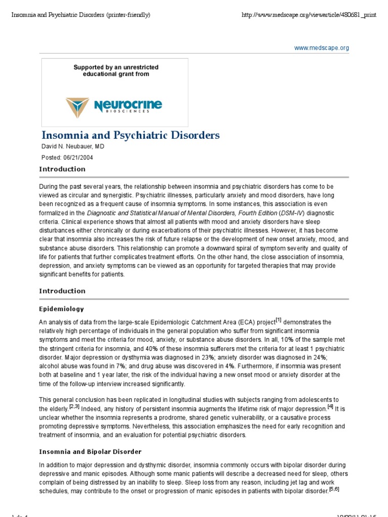 Insomnia And Psychiatric Disorders Insomnia Antidepressant
