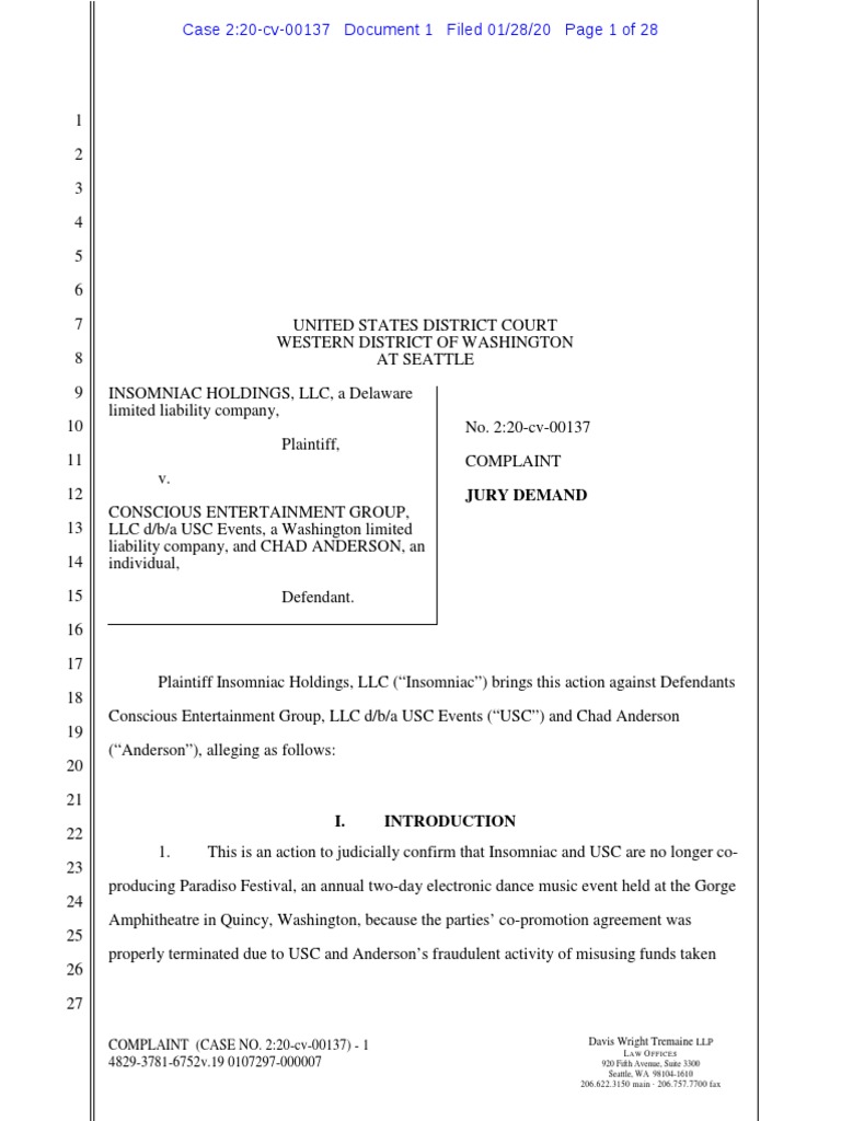 Insomniac Files Complaint Against Usc Events After Breach Of