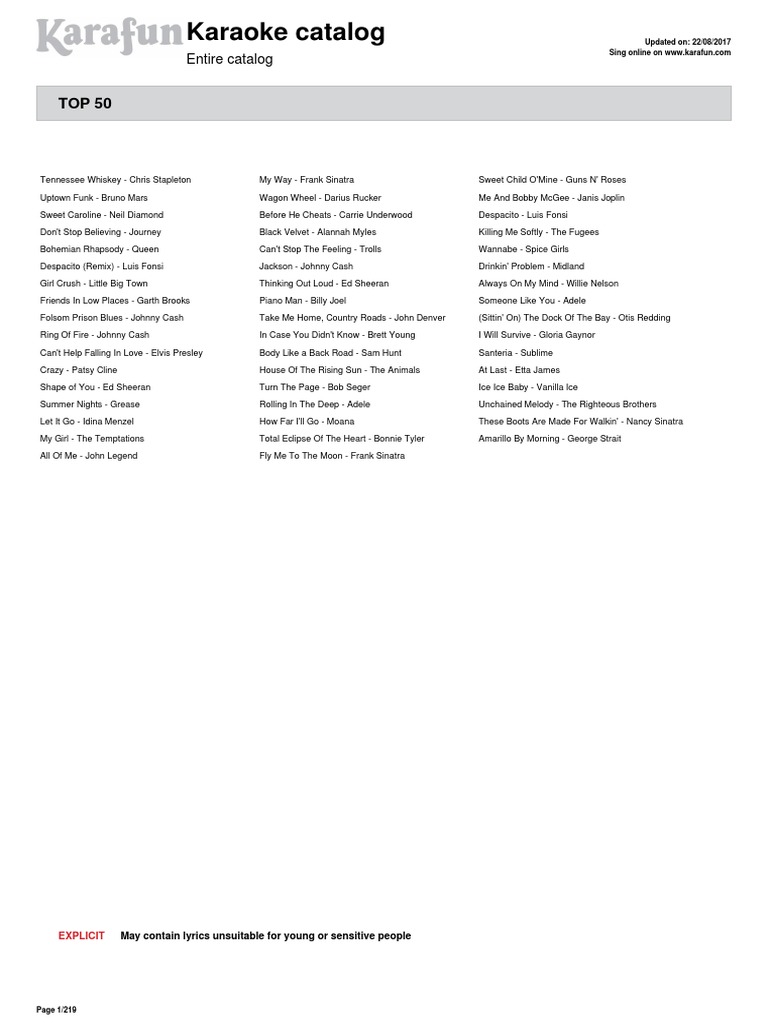 Karafun Catalog Popular Music Entertainment General
