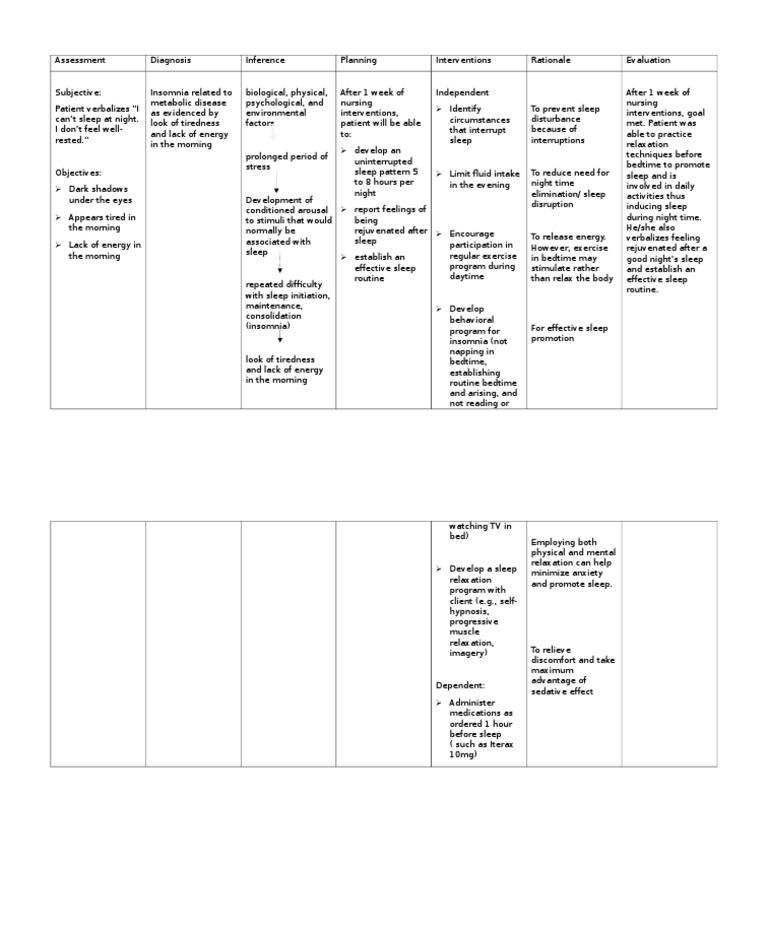 Nursing Care Plan For Insomnia Ncp Insomnia Sleep
