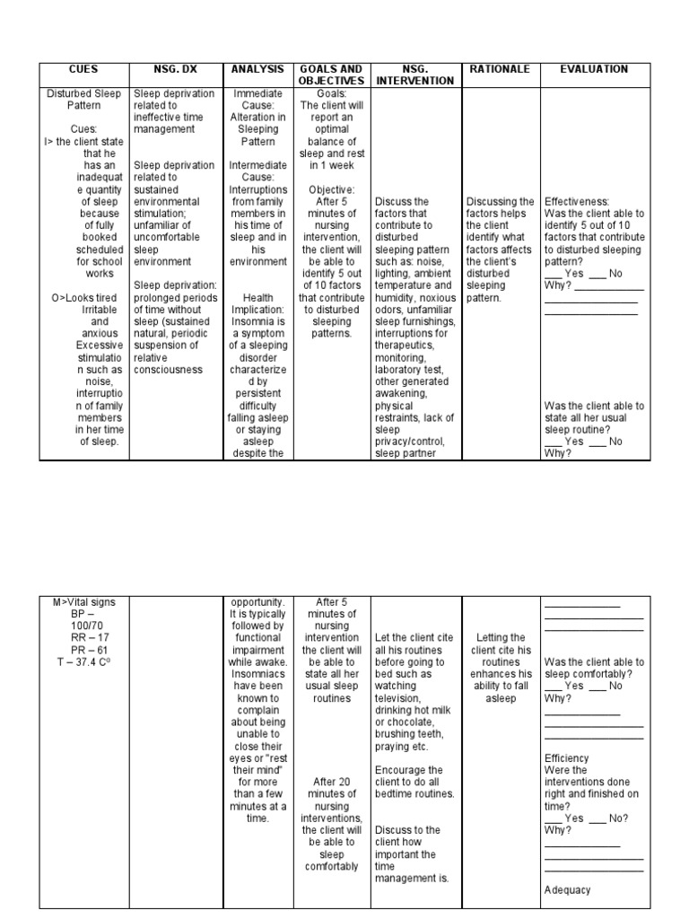 Nursing Care Plan For Insomnia Ncp Insomnia Sleep