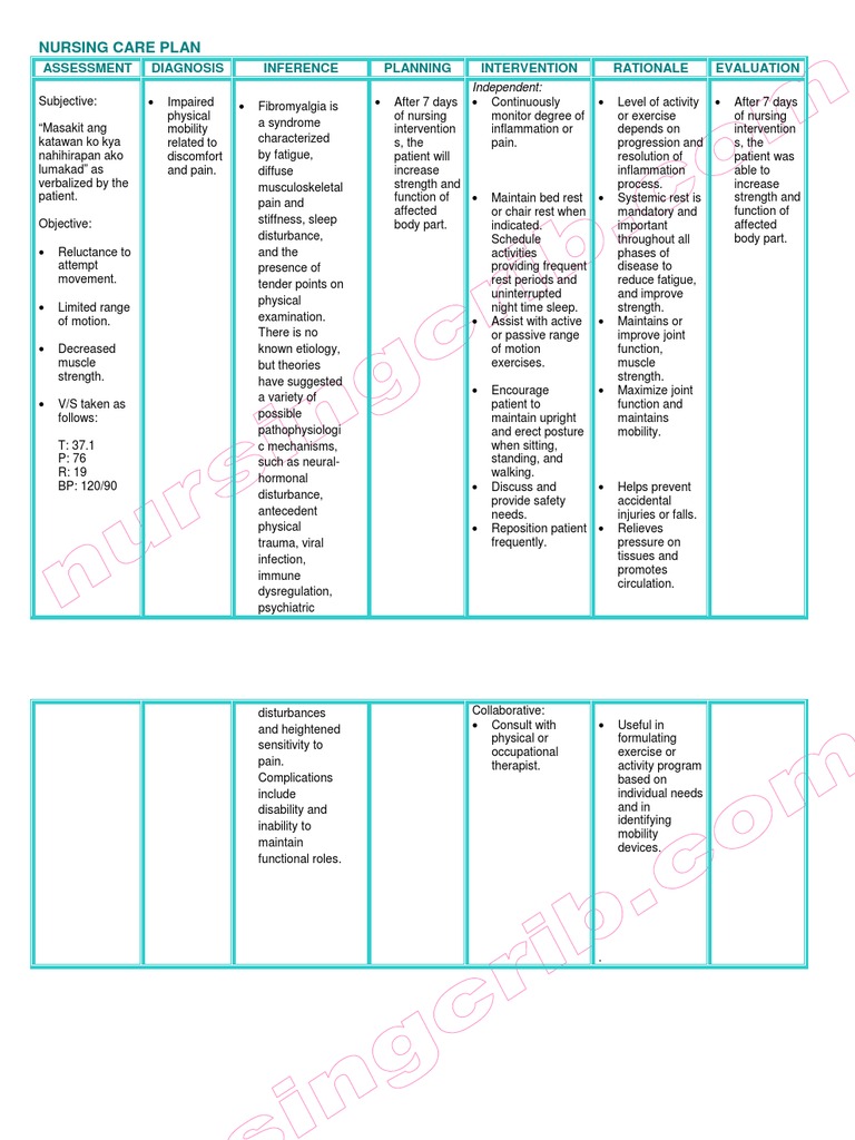 Nursingcrib Com Nursing Care Plan Fibromyalgia Fibromyalgia Pain