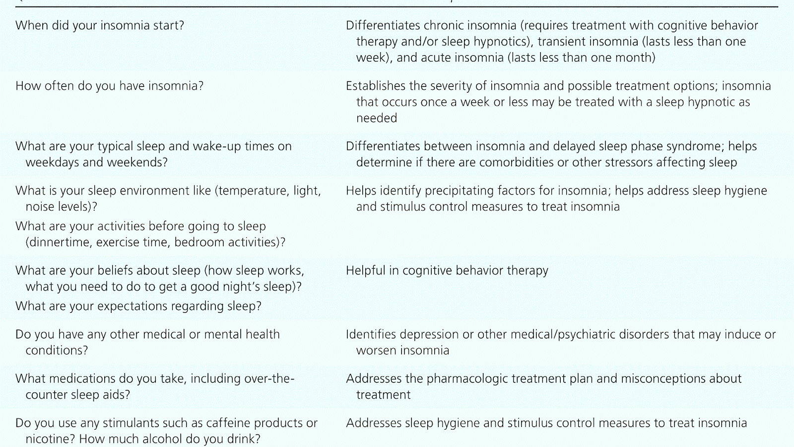 Nonpharmacologic Management Of Chronic Insomnia American Family